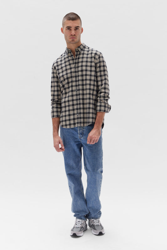 Mens Brushed Flannel Check Shirt Navy