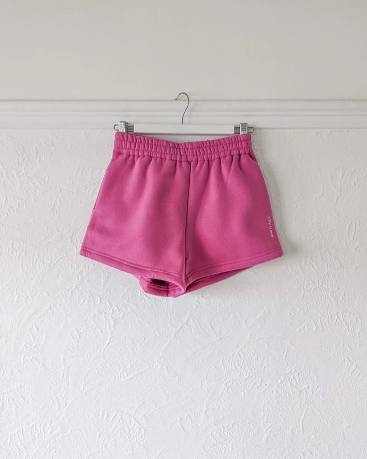 Adult Frankie Logo Shorts Pink, by Tiny Trove. Made from medium weight soft cotton jersey that ensures comfortable wear all day.