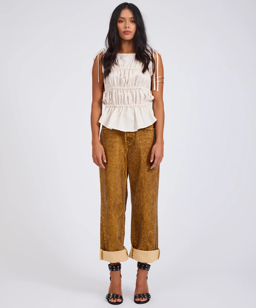 Evelyn Ruched Tie Top Cream
