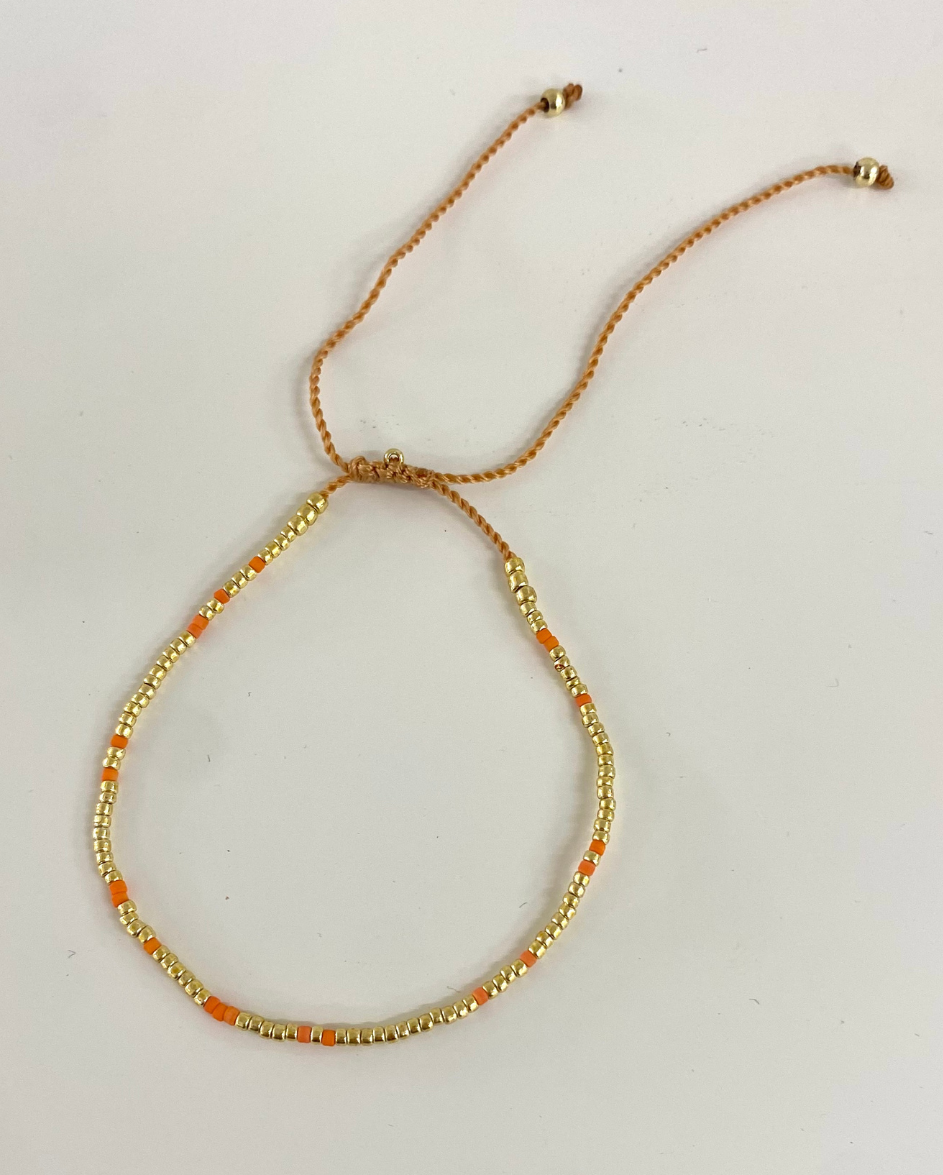 Hand-faceted and delicately-strung, this colourful beaded bracelet is adorned with Orangereen beads complemented by a segment of recycled gold vermeil beads, wear this alone or layer with other beaded tones for a fun yet elegant look.