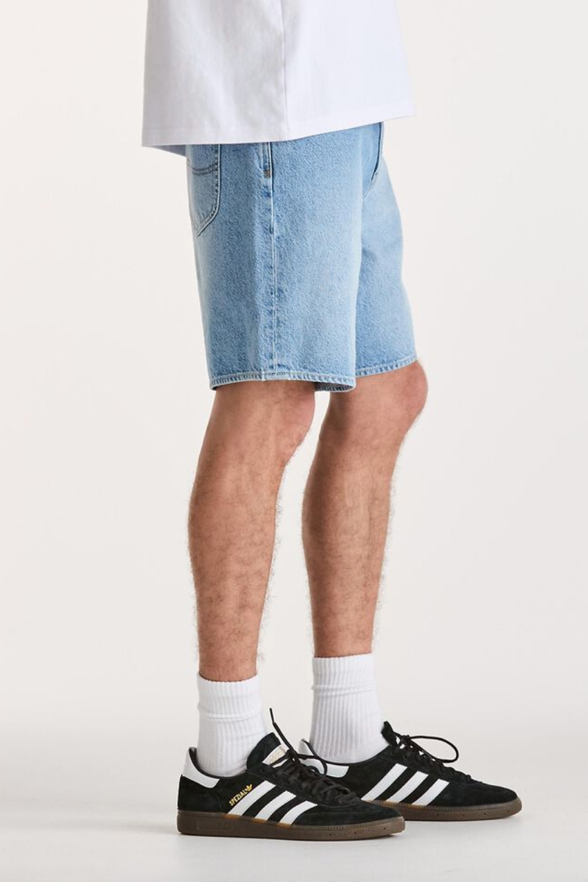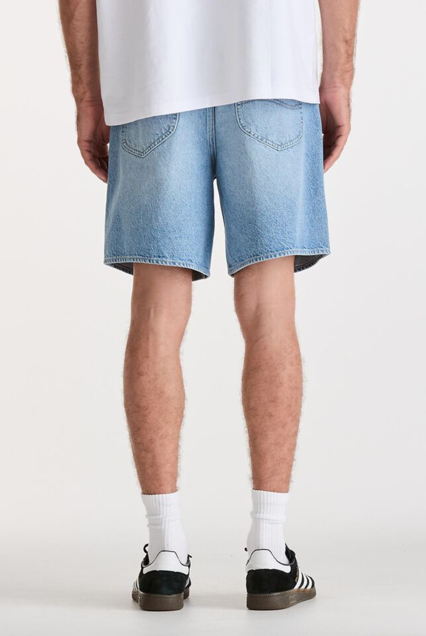 The L-Four Baggy Short is our relaxed straight short. Designed to fit relaxed through the leg, and finishing above the knee. Crafted in a gutsy rigid denim, with dual tone stitching and vintage finish metal hardware. Made in a sun-bleached wash.