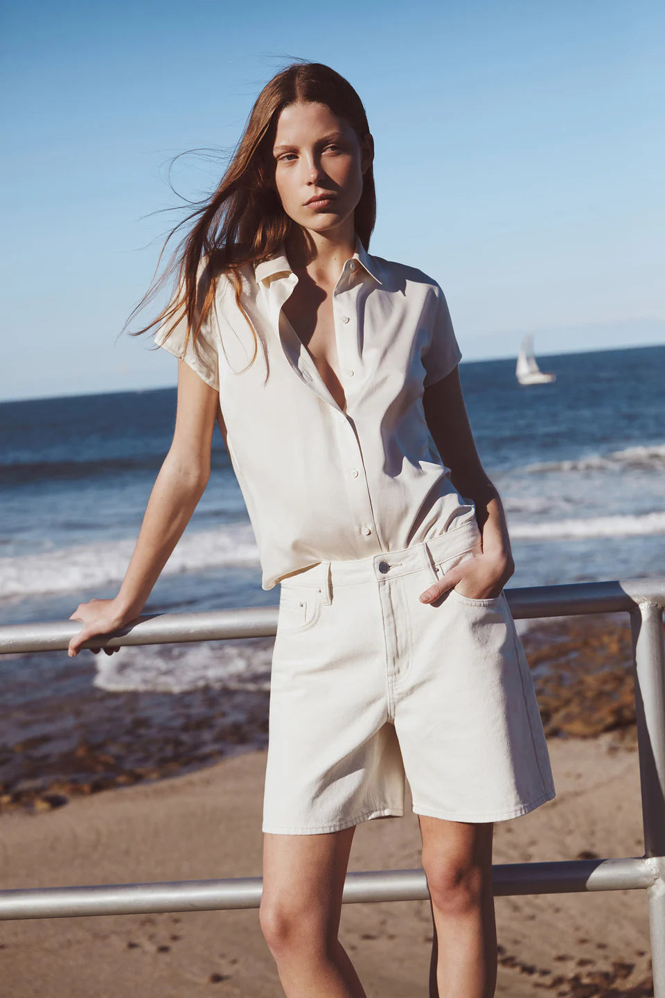 Our Mid Rise Vintage Denim Short is designed to sit below the waist and offers a relaxed A-line fit through the leg.