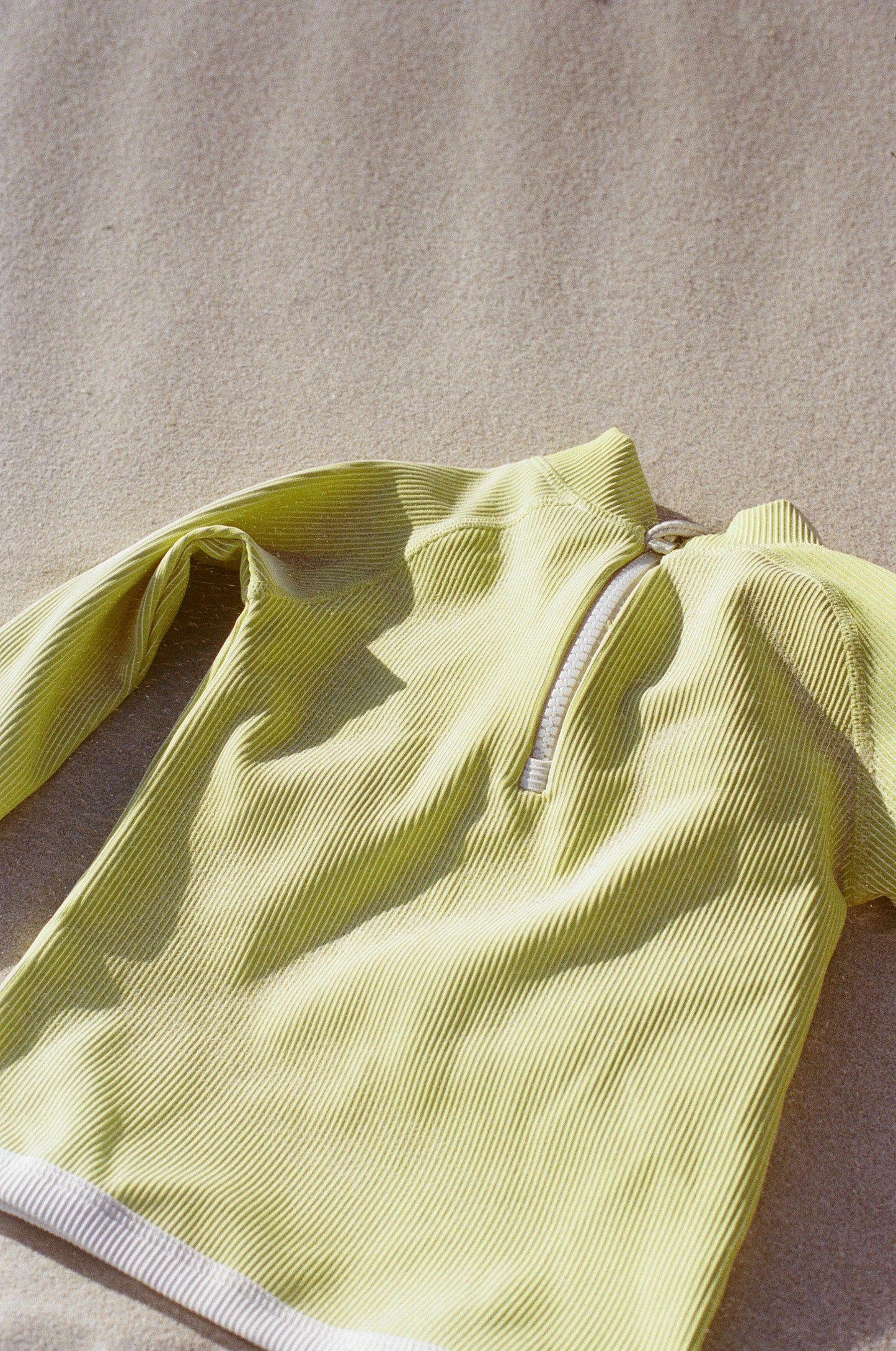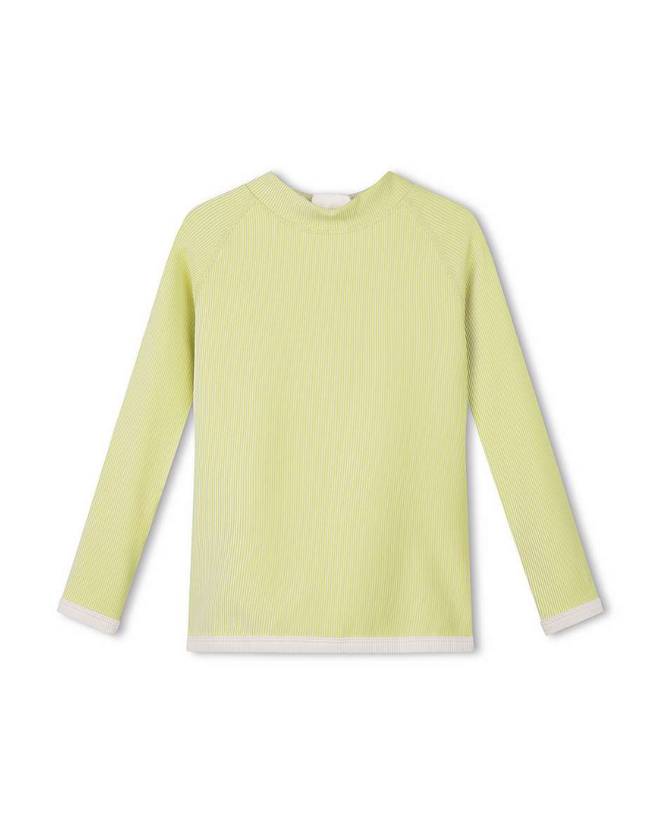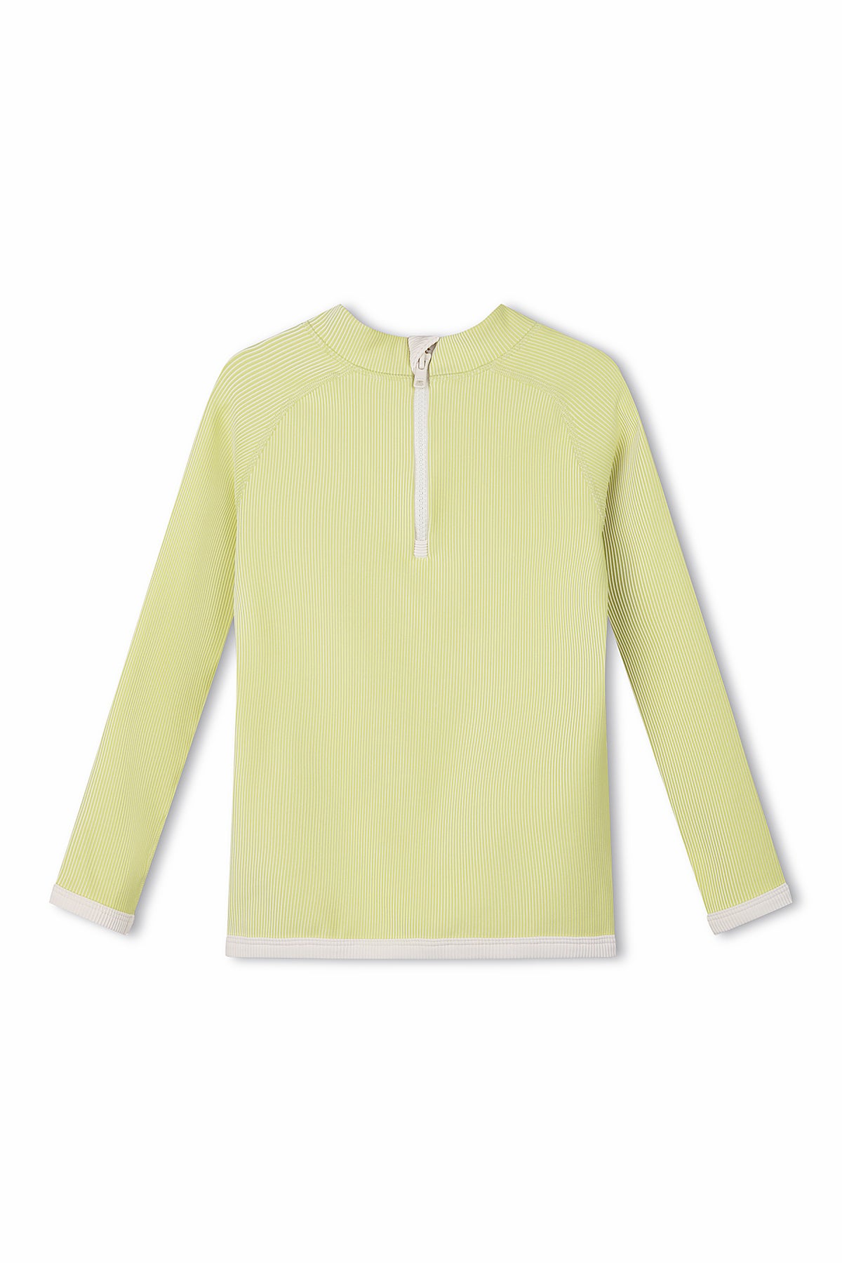 The Mini Rib Rashie by Zulu & Zephyr is a long sleeve, loose fit, ribbed style, featuring contrast rib binds, and back zip entry for easy access. Made for long days at the beach with a sun protection rating of 50+, pair with your preferred Mini swim bottom or one piece.