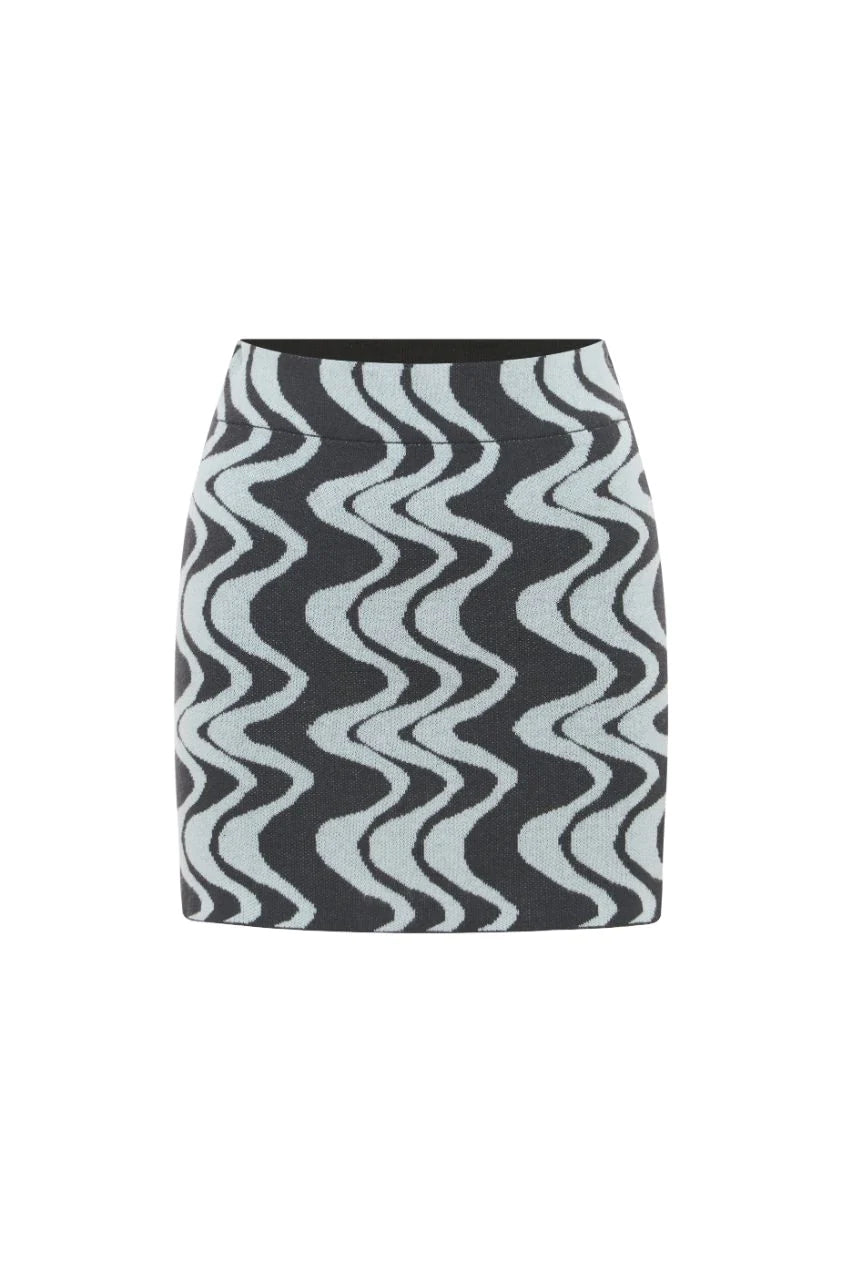 SIGNATURE COTTON INTARSIA KNIT, DELICATELY FASHIONED INTO A NOSTALGIC WAVE PATTERN ON AN ELASTIC WAIST MINI SKIRT.