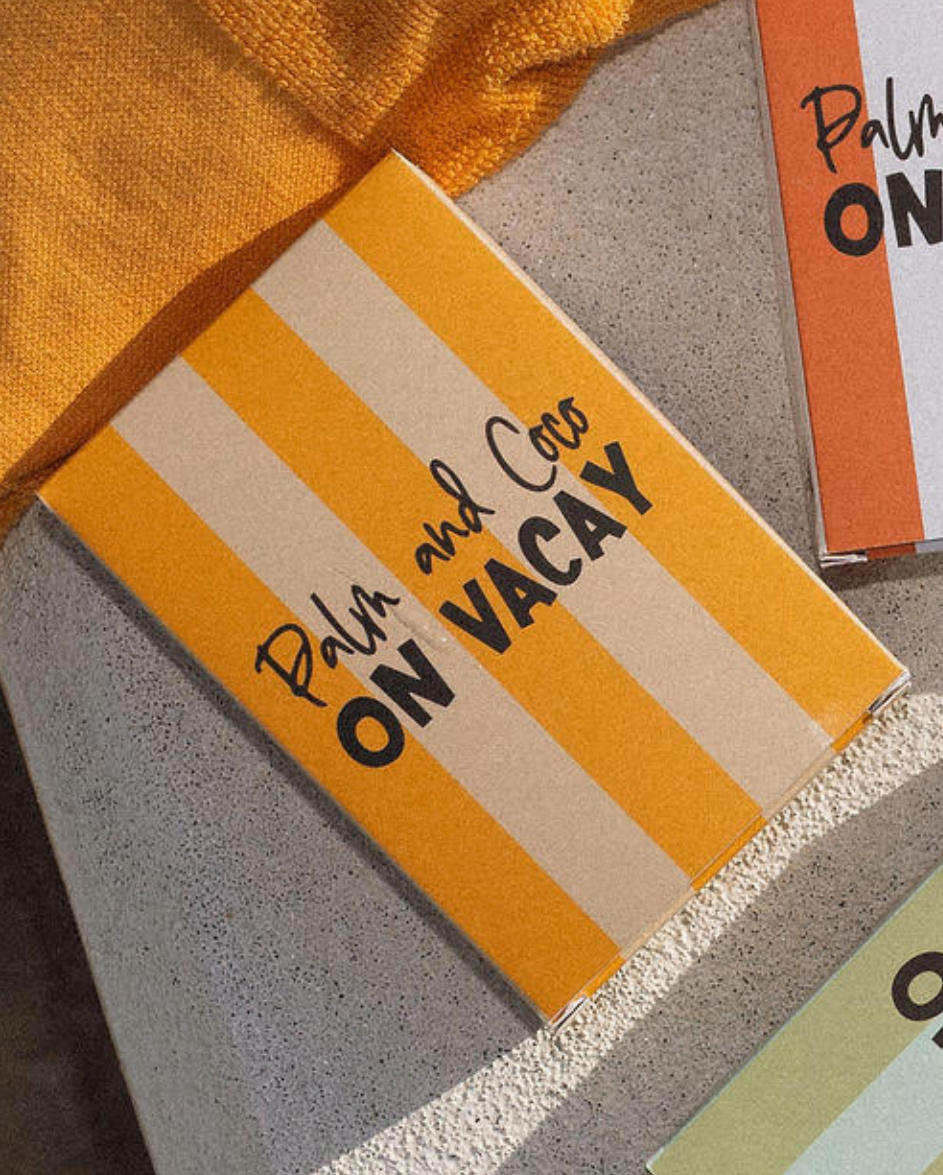 Palm & Coco on Vacay kids playing cards in the yellow & sand stripe colourway–