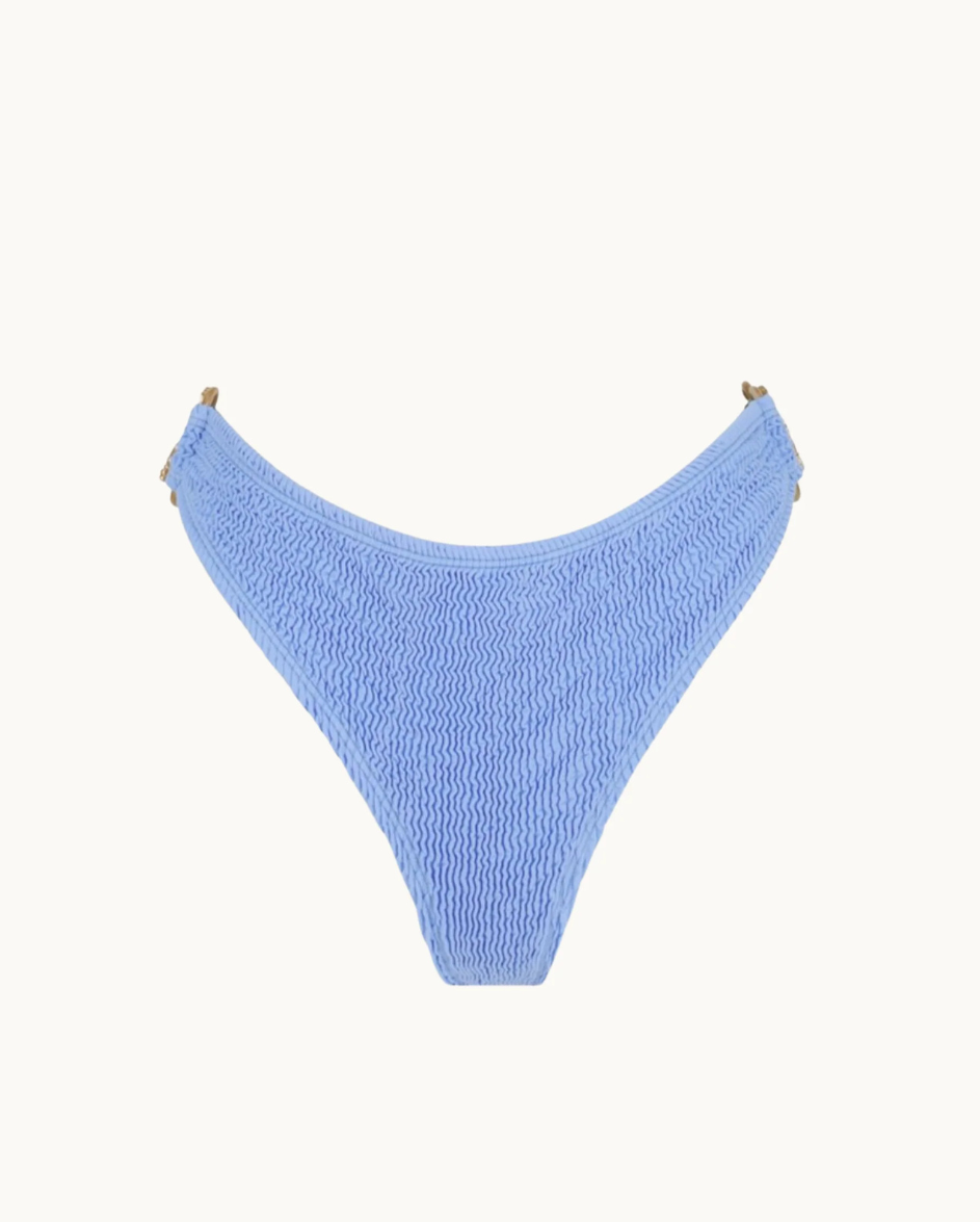 The Lanai Kini, the perfect swimsuit for your next beach adventure. With a trendy colour block design and eco-friendly gold hibiscus hoop, you'll be making a statement while also helping the environment. The crinkle fabric adds a playful touch, while the back gold clasp ensures a secure fit for a range of bust sizes. Get ready to rock this stylish and sustainable piece!
