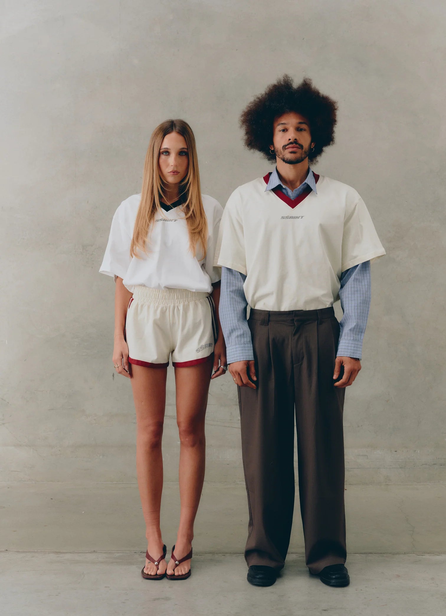 A modern take on the retro sport short. Designed with a relaxed fit, contrast trim, and elastic waistband for everyday comfort. Featuring the signature SŚAINT silver reflective logo, these shorts are versatile enough to wear from lounge to street.