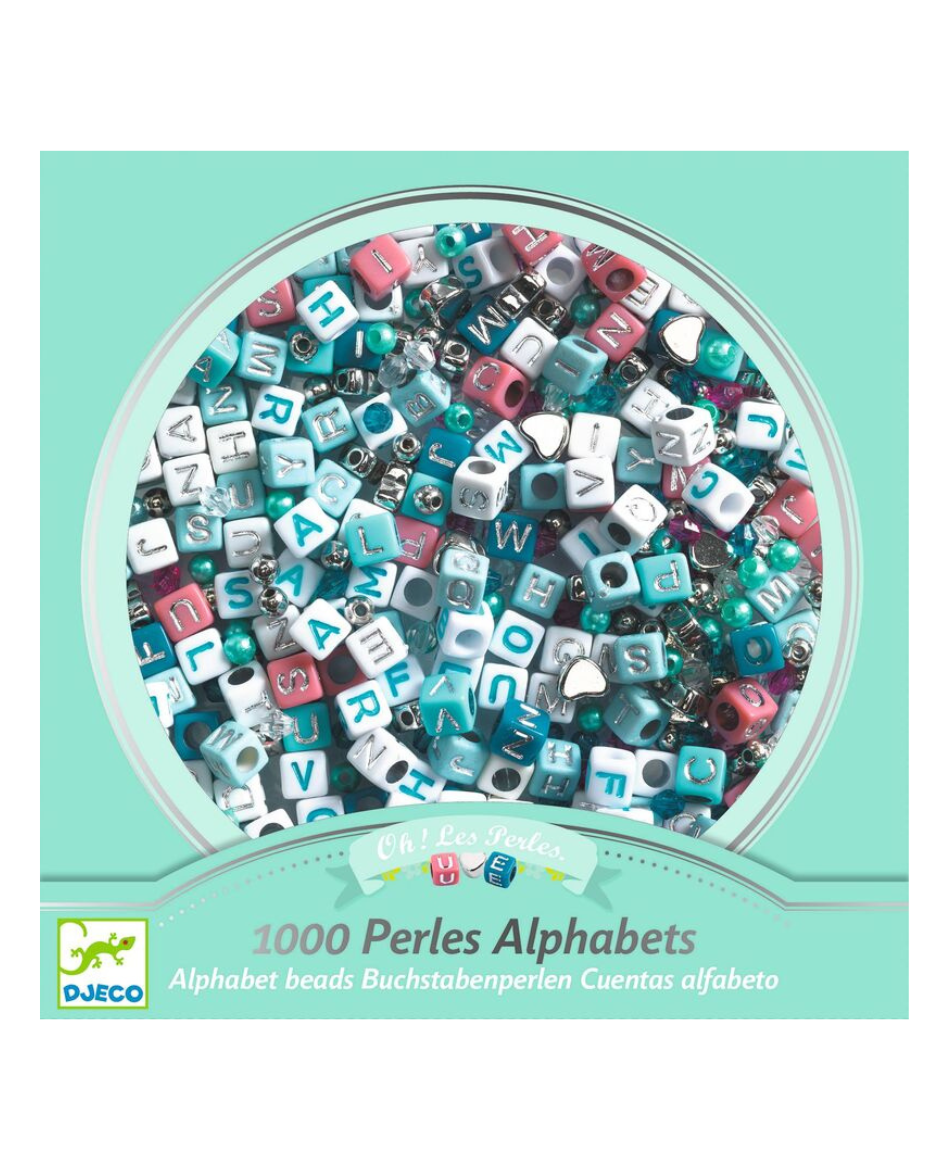 Contents: 600 coloured alphabet beads, 400 medium beads, 2x 5-metre elastic cord and 2 needles.