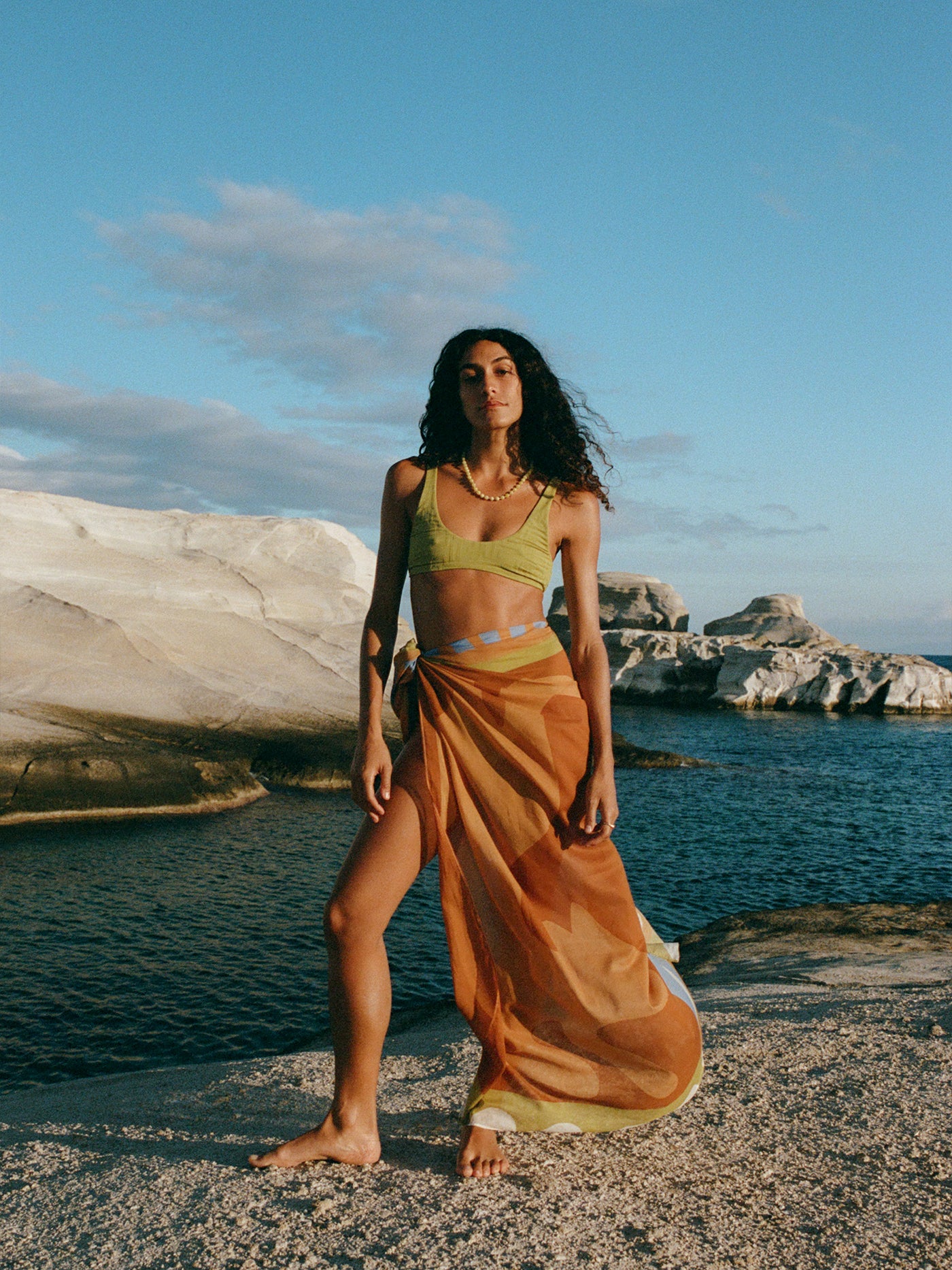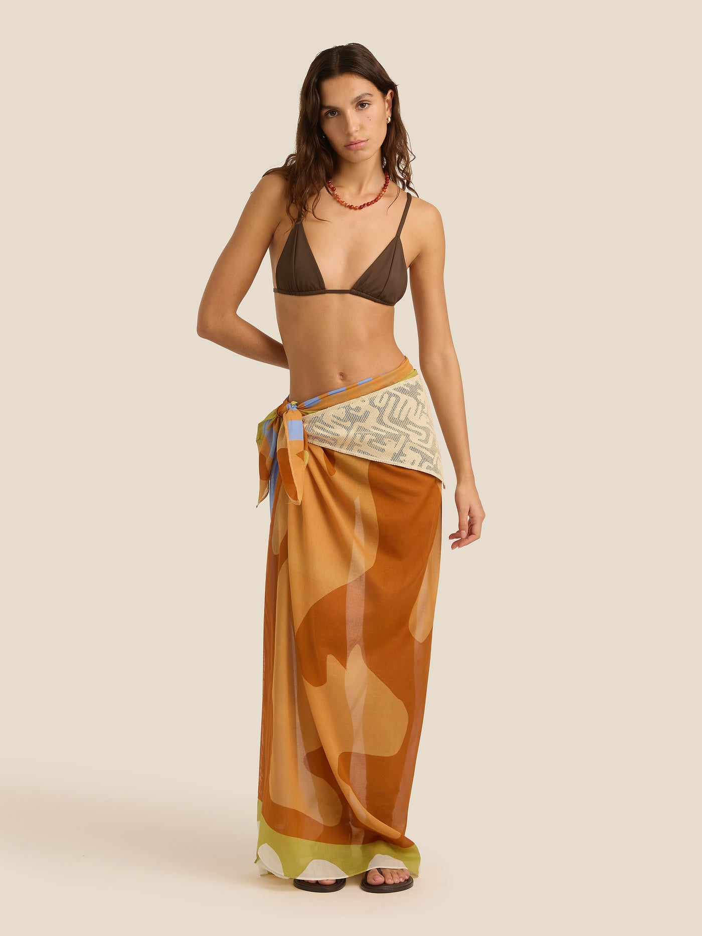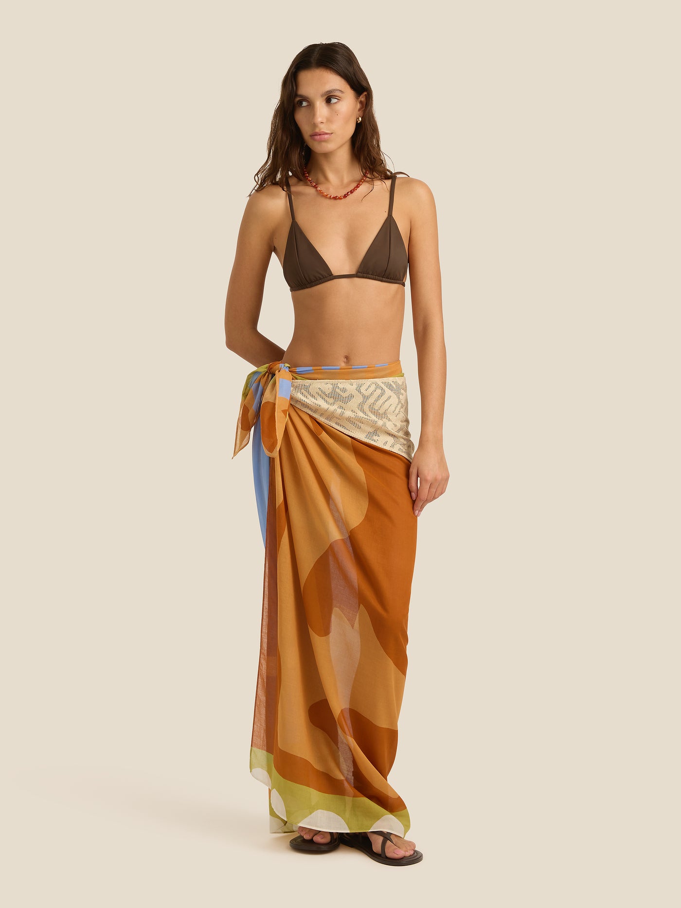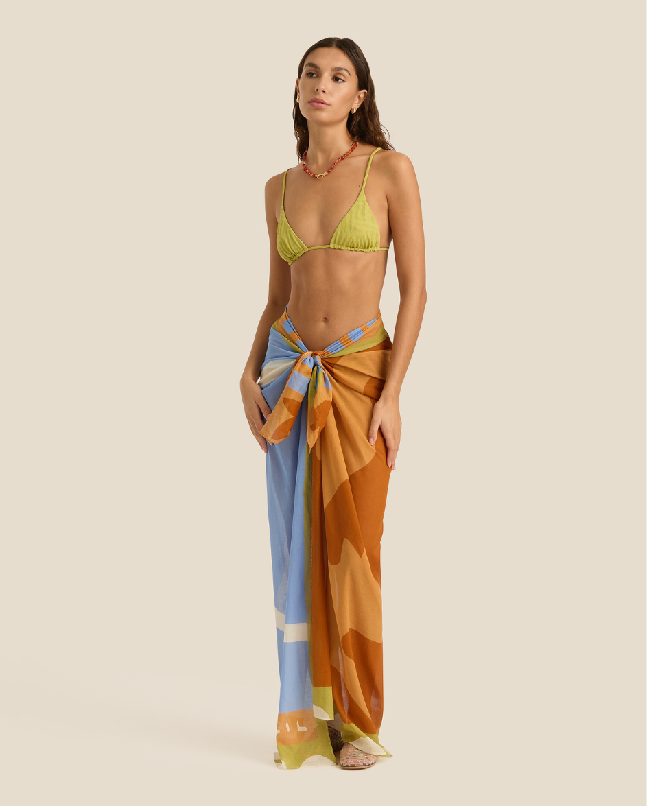 Where it all began. A perfect square of lightweight organic cotton, versatile for all your over-swim needs. Our signature piece—the Square Pareo can be tied as a mini or midi length beach cover-up, or folded into quarters and used for a myriad of purposes as a smaller square scarf.