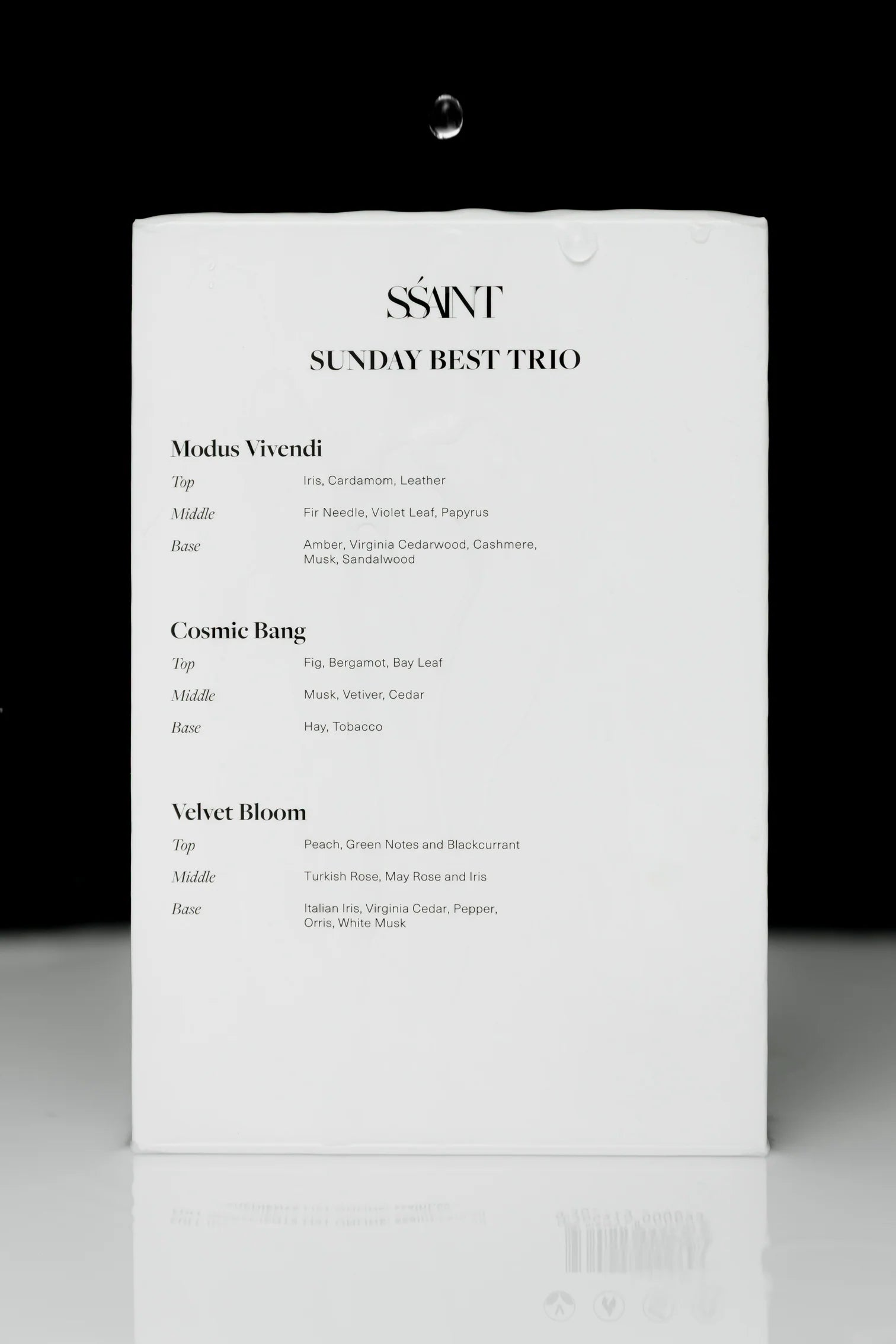 Introducing Sunday Best - Fresh, radiant, and subtly seductive. This trio is a celebration of modern femininity and quiet luxury—clean linens, glowing skin, and confidence that doesn’t need to shout. Perfect for brunch dates, gallery days, or simply feeling your best. Sunday Best alludes to “Femme” with an elevated twist.